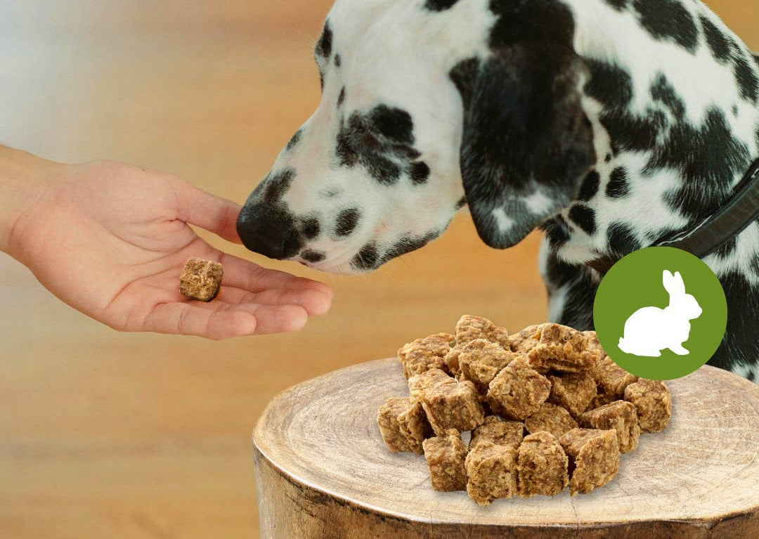 Zajčje kocke brez konzervansov so idealen prigrizek tudi za mačke. Primerne za treninge.